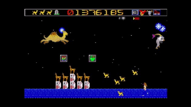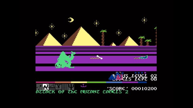 The items did too, including some pretty inspired ones. Some items even do things like speed up the scrolling, which is useful in a game that’s about distance covered and not enemies slain. There’s even layers to the NPC too, since it can collect items independently that benefits you both. I still preferred having the goat ride me, but I’m all about player decisions and strategic flexibility. Meanwhile, while the level themes from the original Mutant Camels return, they just play better here, with more elegant enemy attacks (though not as good as Revenge II in my opinion). I’m still not happy with the movement, and there’s too many whammy items that screw with that movement, but the final computer game of this collection is a good finishing note.
