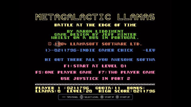 What’s missing? Well I almost said “Giles the Goat” but he does show up in the final non-Heart of Neon (AHHHHHHH! Mother f*cker, Cathy! There is something wrong with you!) trailer in timeline, called “Llamasoft’s Later Years.” But the timeline is missing a few things that I would have enjoyed a lot. One of my favorite features in Making of Karateka were the audio commentaries. Now those would be harder to do in non-linear games. No doubt about it, and the majority of games in this collection are arcaders. But, I have faith that Digital Eclipse could come up with a solution anyway. Maybe situational things where the actions pauses to load the commentary when, say, a new enemy first appears or when a level theme changes. Then the action resumes afterward with the commentary playing, then it pauses the game if you finish the stage before the commentary finishes. See, those commentaries not only provide game-specific history lessons for people interested in such things (raises hand) but also can serve as inspiration for the next generation of Jeff Minters out there. Plus they’re just plain cool.