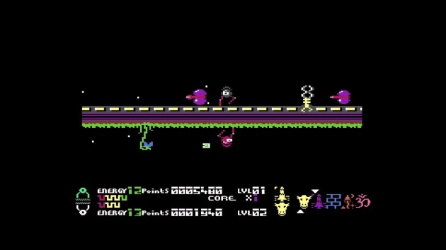 As the finale of the Commodore 64 era of this set, it’s hard to imagine a more fitting swan song than Voidrunner. The third game in the Gridrunner series is the best yet and, yet again, one of the best arcaders ever on a home computer. Don’t worry though, because Voidrunner has enough newness to not give me “broken record” syndrome. Actually, it feels very modern in many ways. Take the existing Gridrunner formula and sprinkle a little WarioWare on it. Just a little. Voidrunner’s twist is that you control four ships at once. For the first level, they’re lined up with the middle two ships together and two more flanking their corners. All four are pointed at the ceiling and you just fire away at the standard Gridrunner/Centipede arrangement with four times the firepower. Okay, that alone is interesting for a minor upgrade, though I admit at first I was like “that’s grasping at straws for a sequel.” But then the second level had the same aligned formation, only with the ships pointed downward, and I sat up in my chair. Then in the third level, this happened: