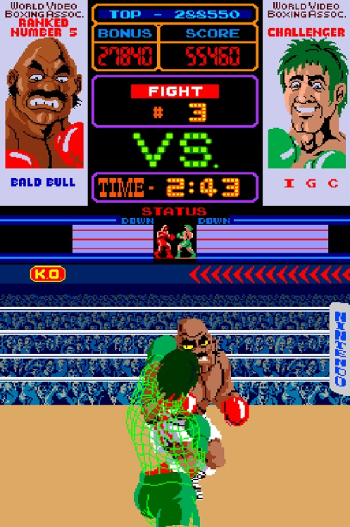 If there’s such a thing as the competition for the best job of “stripping down” a coin-op, the NES Punch-Out!! has to be the outright winner, right? Given the limitations of Famicom, especially when this started development, the “vibe” of the coin-op with huge characters and an emphasis on counterattacking was not only retained by actually optimized in a way the coin-ops never were. In terms of graphics, Mike Tyson’s Punch-Out!! probably had the biggest character sprites seen in a game console up to this point, and they don’t feel like a “cheat” like the gigantic bosses of Contra. These aren’t bits in the background being with an invisible hit box that creates the illusion of size. If the sprites were ugly, it wouldn’t matter. But they’re strikingly memorable and create a real sense of threat. One thing that neither coin-op successfully conveys is a sense of being hopelessly outsized and outmatched. In the NES game, the opponents feel HUGE and you feel so very, very small, and on behalf of small stature people everywhere, thank you Nintendo for that. The violence is also vastly improved. Punches feel authentic and savage, thanks in no small part to some of the best damage sprites 8-bit gaming ever saw.