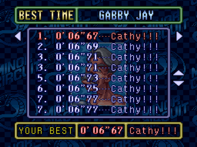 As noted in the above picture, there’s more to it than just jerking left and right on the controller. Two of the fighters require special finishing techniques to beat, and a few have Punch-Out!! like moves you have to dodge, including the final fighter spitting fire at you. Okay, so Arm Wrestling is unintuitive and physically exhausting to play, but I…….. kinda liked it. It’s also an innovator in a few ways. You know the Mario Kart “hit the gas at the right moment to get a boost” thing? Arm Wrestling did it first! Every match has a starting pistol. If you hit LEFT before the pistol, you get a foul. Two fouls is a game over, but if your timing is true and you hit LEFT on the exact right frame, you can score super quick KOs on opponents. The time trial system from Super Punch-Out returns, and honestly I think it’s more potently addictive here. Plus, unlike Super Punch-Out!!, the second wave of fighters ALSO has time trials that are exclusive to the rematches.