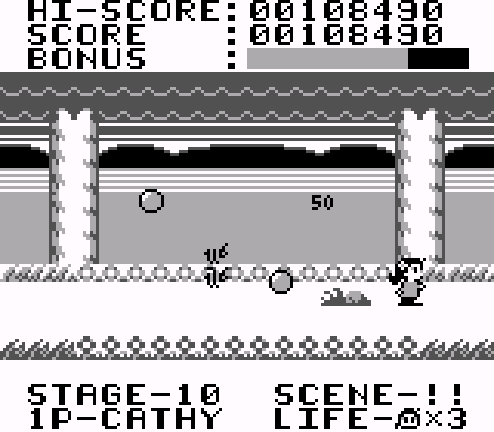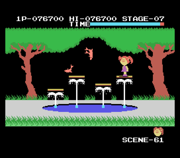 Weirdly (perhaps sadly) the blank screens return, only instead of being absolutely nothing, your cat (or a dog if you play as the boy) is waiting for you. Sometimes it leaves a bonus fruit for you, and sometimes it takes a sh*t and if you step on it you lose 700 points. I’m not joking. Cute clapback to the original, I guess, but I wish these would have been dumped altogether. Heh, dumped. It’s funny because you’re jumping over sh*t.