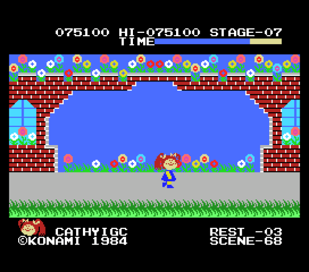 (Cabbage Patch Kids for MSX) There was literally no challenge on this screen. Just walk right and don’t stop to smell the flowers since the timer is still running. Or maybe the challenge is sensory deprivation, and the object is to not be lost in isolation of your own internal madness. Probably not since I didn’t die on it once.
