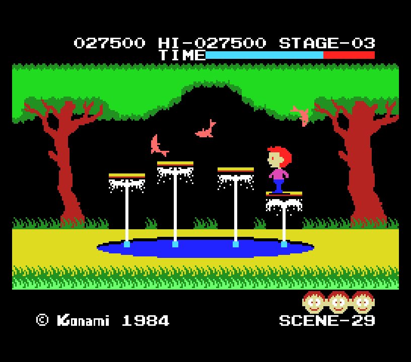 (Athletic Land for MSX) Weirdly, when Konami filed the serial numbers off Cabbage Patch Kids and re-released it from the MSX as Athletic Land, it stripped down the graphics, which now more closely resemble the original Colecovision release. So weird, isn’t it?