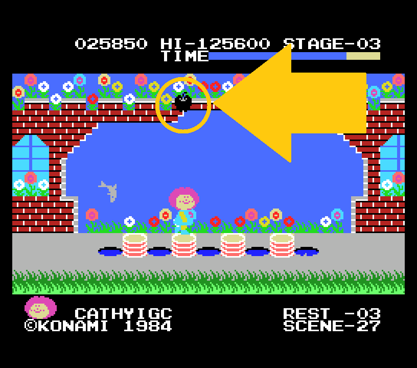 (Cabbage Patch Kids for MSX) This apple is the only bonus points item in the game and it only appears in trampoline levels. Sometimes I genuinely think it’s near impossible to get