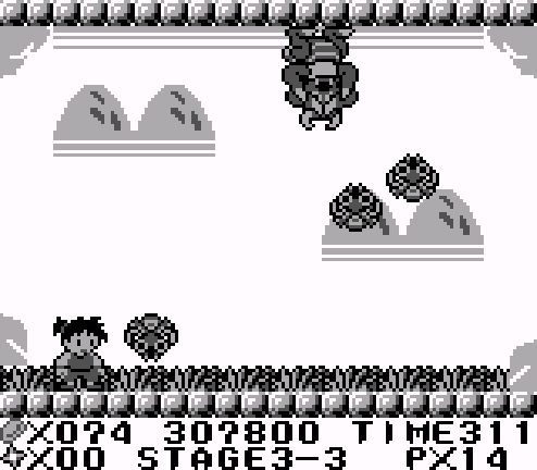 Which isn’t to say there’s no action in Wario Land. Wario’s tackle is satisfying enough, and it’s always fun to pick up a downed enemy and throw them off their perch and to their death, hopefully involving lava. If it worked perfectly, the combat would be S-tier for 8-bits, but that’s not the case. Wario is one of the first 2D retro games I’ve reviewed where the physics are wonky to the point of being genuinely unpredictable, mostly thanks to the level layouts. If you attempt to pick up an enemy with any structure nearby, whatever you’re carrying will be knocked out of your hand, and the enemy might instead shuffle around like they’re square dancing upside-down around your sprite. There’s a roughness to Wario Land that’s obvious right from the start and sticks around until the bitter end.