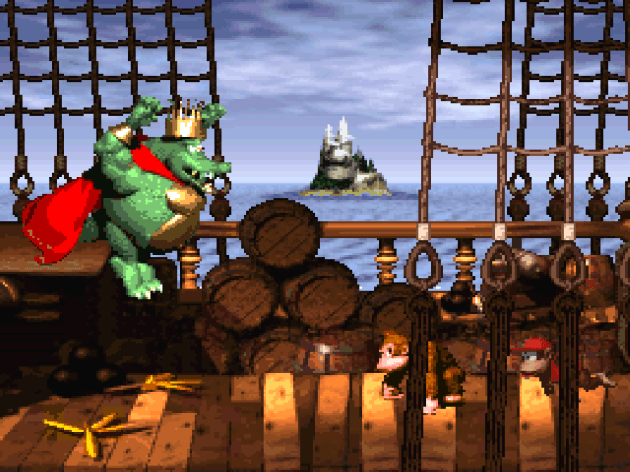 Donkey Kong Country’s bosses are all dull, but King K. Rool takes the cake. His arena is much bigger than the screen, and his attack pattern is basically adding one pass across the full length of the arena after every hit. So when he drops cannonballs across the screen, instead of an exciting pattern like dodging them for several seconds, the cannonballs drop one at a time across the length of the screen. It’s the most unimaginative way of handling any boss, let alone a final one.