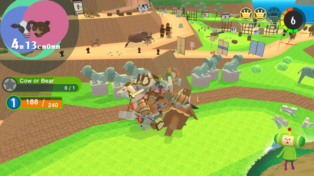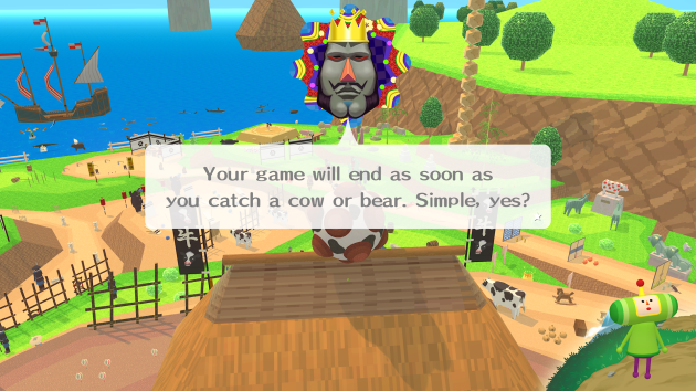 Speaking of doubling down, levels that completely go against the frantic nature of Katamari are still here and horrible as ever. Cowbear, the level that ends the very first time you roll up a cow or bear because ain’t that quirky is back. Just like previous games, the developer’s definition of what constitutes a cow or a bear is trollishly open to interpretation. Run over a single carton of milk that you couldn’t see because the camera is still one of the worst of any 3D action game? The level is over because a carton of milk counts as a cow, even though there isn’t a cow on the package. Well that’s just ridiculous. Saying a carton of milk counts as a cow is like saying a yeast infection is a baby. What’s really infuriating is that the king states the rules require you to catch a cow or a bear. Um, milk isn’t a creature. You don’t “catch” it, nor is it caught in the “catch!” sense. They’re sitting on the ground. YEAH, I’M BEING THAT PETTY! This gimmick f*cking sucks and they keep bringing it back! Petty disappointment is all I’ve ever gotten out of it.