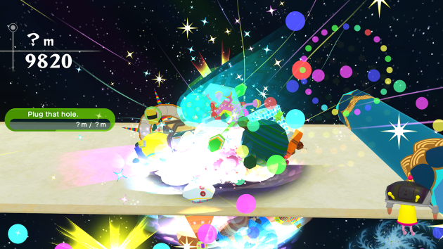 That doesn’t sound like a terrible idea at all, but such a specific concept requires beefing-up the graphics, play control, and camera so that it’s easier to tell things apart and you’re not constantly getting screwed by a camera. Oh and maybe ditch the King of All Cosmos for levels like this since this requires closely paying attention to what’s in front of you instead of just rolling up everything tinier than you. And this is why doubling down on boxy retro graphics, the same 2004 “enemy” behavior patterns, and the screen-blocking text of the King of All Cosmos crosses the line from a bad idea to outright self-sabotage.