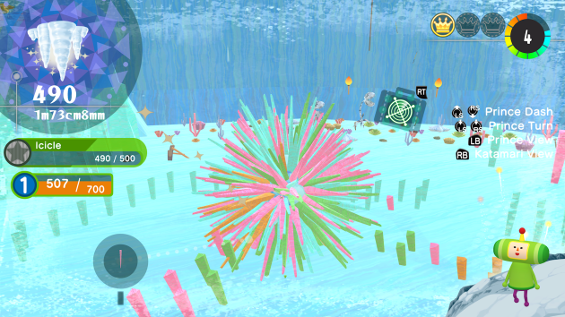 It looks like a Koosh Ball but actually it’s just one of the laziest levels in the history of Katamari, where the object is to roll-up icicles. It’s also one of the smallest levels ever in a Katamari game. This was so uninspired that I was genuinely embarrassed for the developers after playing it. It was kind of sad, really.