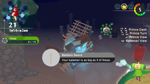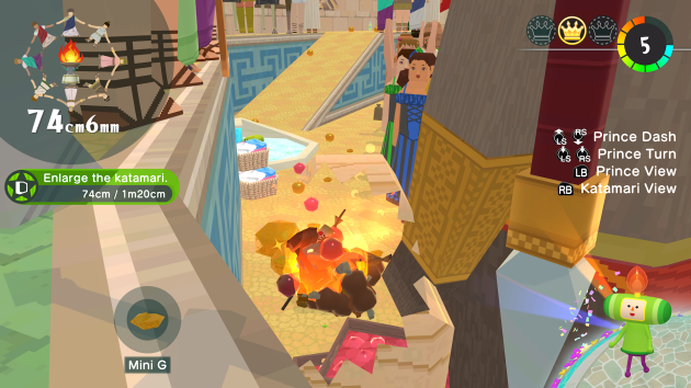Even when the ball is small and you’re inside areas that are hypothetically vast and open, it doesn’t matter because things will inevitably block the camera, and that’s not even counting all the pop-up texts that happen dead center in the middle of the playfield. If you don’t think cameras have come far in games, try playing Super Mario 64 and Mario Odyssey back to back. Camera development in 3D games has come a long way since 2004, and that’s why Once Upon a Katamari’s style of throwback is obnoxious instead of nostalgic.