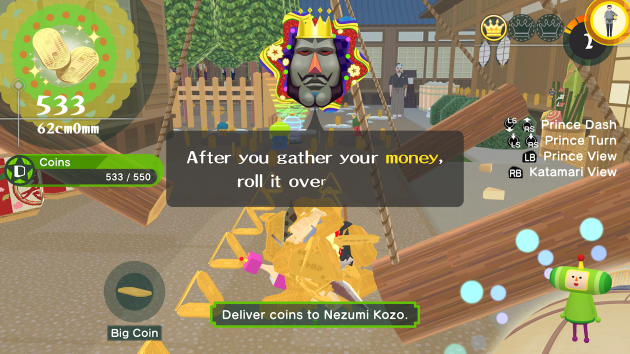 And in this game, it’s not just the King of All Cosmos that blocks the action. For whatever reason, they placed the “your Katamari is as big as…..” boxes in the center of the screen even though there’s plenty of non-action-blocking room at the bottom of the screen. What the actual f*ck? What….. the actual…… f*ck?!
