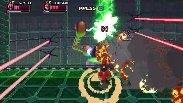 Between this and losing your bomb meter from pits in the stages, most of the kids said “peace out” and refused to continue even when we reached the Megazord sequence (more on that later). I did convince them to come back for the next brawler level, which was followed by a motorcycle level that’s sort of like Road Rash with Power Rangers. It seemed fun at first, until even more instakill traps that come on faster and are harder to spot arrived. The kids’ lives drained out and it was at that point they were done for good. And I mean for good, as they didn’t even want to hop on and off for the brawling levels because they were furious about the penalty for the pits. Sasha and I started over with me as the Pink Ranger and her as the Red Ranger and we did finish the game, and it was just barely okay as a two player experience from start to finish. “Are you giving it a YES!?” she asked, and I honestly didn’t know until I went back to playing single player to gather media for this review. I was thinking of giving it a split decision.