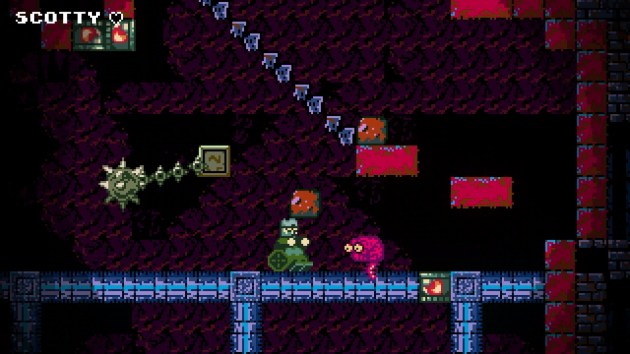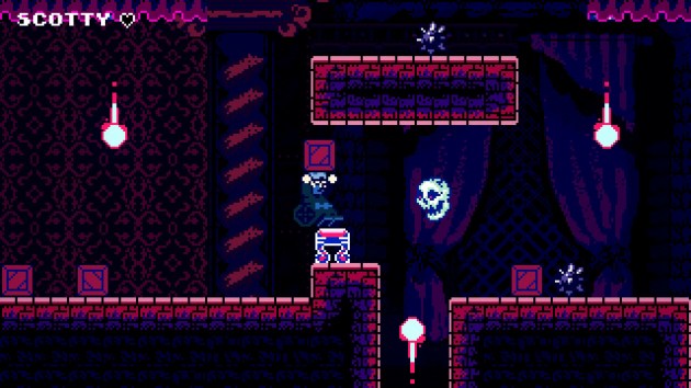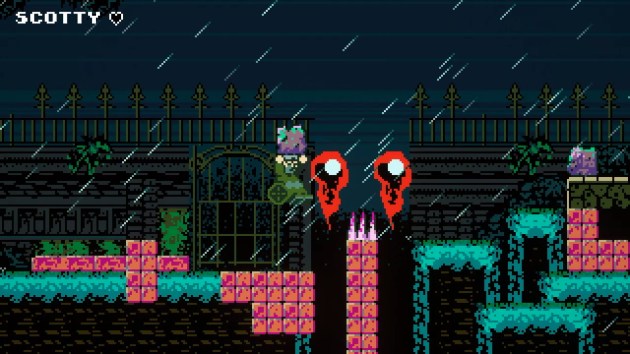 It’s also a really short game. Like, you should be able to finish your first play session in a couple hours at most, even if you die a lot, with a lot of that time eaten up by unskippable cut scenes. I died over 100 times and I still finished it in less time than it took to watch three episodes of Welcome to Derry, aka “why did we pass on Stranger Things?” Most of the level design comes down to stacking blocks to jump over walls or reach staircases or timing-based traps. Most of the obstacles aren’t enemies but rather spikes. Spiky balls that appear and disappear. Bigger spiky balls that fall from the ceiling when you get near them. The bosses are Mario 2/Castle of Illusion “throw the crates at the thing until you win” fights. Boilerplate stuff, but well-made boilerplate stuff. Seriously, if you want a perfectly decent platformer that costs $10 or less and will eat up three hours or less of your life (in theory I bet a person could beat this in an hour on their first try if they play well enough), this isn’t a bad choice for that just on its gameplay merits. The Rocky Horror theme or video game parodies that didn’t land with me could be the icing on the cake for you.