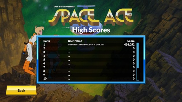 On the other hand, I pulled this monster final score off by not even watching the cartoon at all and instead focusing completely on the move guide. That’s what ultimately made the difference with these two games. With Dragon’s Lair, you can both enjoy the spectacle and play the game at the same time. It’s not a visually busy game. Space Ace always has a LOT going on, and if you take even a microsecond to appreciate that, you might find yourself losing a life. And now, it makes sense why nobody trades tales of Space Ace despite looking every bit as visually impressive as Dragon’s Lair. The fact that the first game proves you can get away with a visually nice animated game guided by a series of quick time events means I can’t excuse it for Space Ace. It needed to take a less-is-more approach, and it didn’t. Most telling of all: while I thought Dragon’s Lair II was more distracting, I actually scored lower on Space Ace in my quiz test. This was the game where Dyer and Booth lost their way.