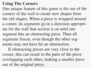 My hunch tells me the whammy ball was really included as a sneaky.. and clever.. way of helping lessen “last mother f’n brick syndrome” that’s common to the genre. That’s because the activating hit travels upward in a straight angle, making it the easiest shot to aim in the game. It’s not an automatic way of eliminating an annoyingly-placed final brick, as you still have to get the rebound directly under it. But, just having it as an option I found worked well for eliminating the often sloggy end of stage moments that plague brick breakers. Gosh, how I wish I had read the book, as this would have come in handy in the later stages.