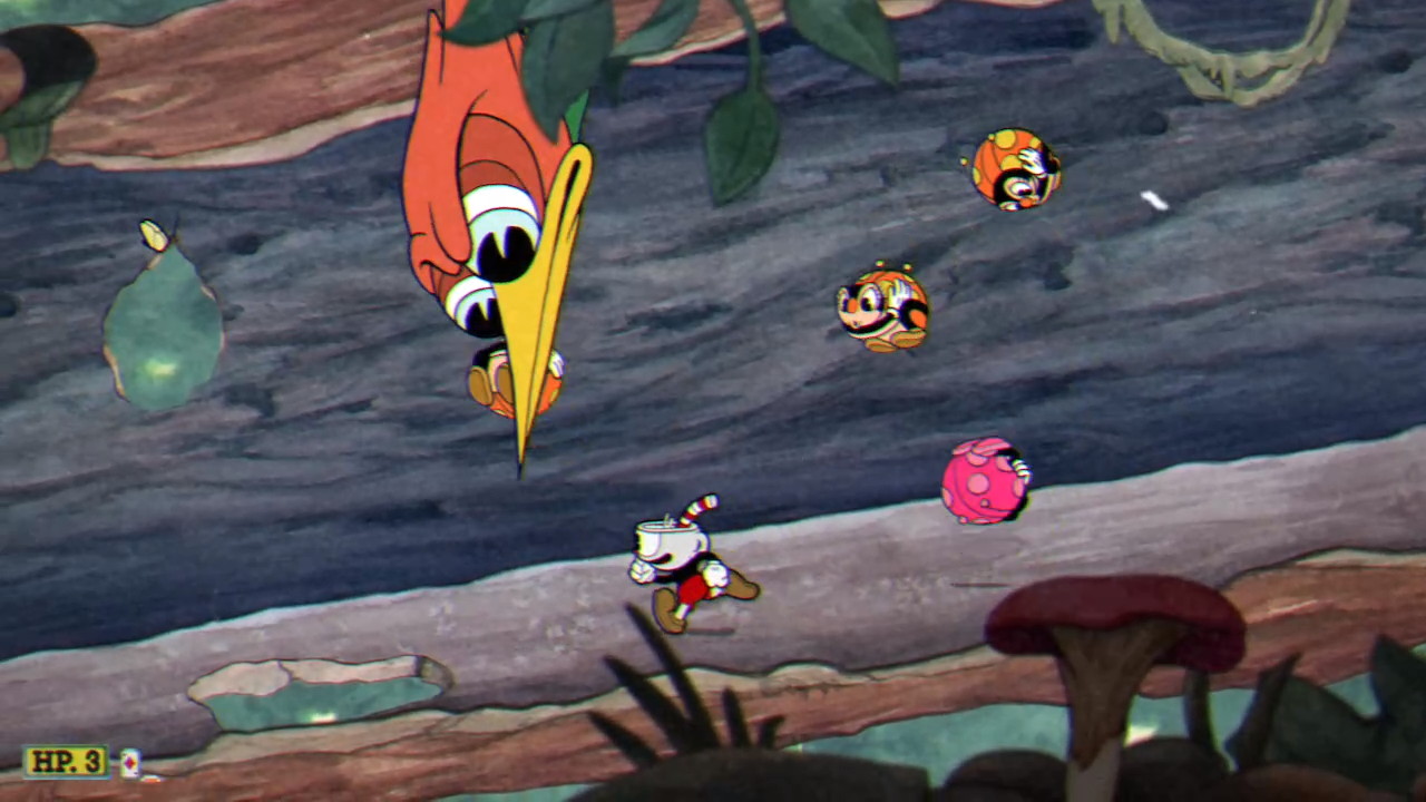 One of the most memorable set-pieces from Cuphead’s traditional levels are the giant crabs that you hop across. Remarkable that a game based almost entirely around boss fights managed to avoid the trope of fighting a giant crab. These indestructible decapods are the closest you get to that. What I really love about the crabs is this is one of the set pieces they absolutely nailed the pacing on. This segment doesn’t go on forever and it’s probably simplest and easiest part of the whole stage. Hop-on, admire the visuals, switch crabs a couple times, grab the coin, and move on. Quick and fun, just the way I likes it!