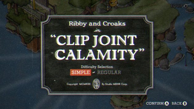 (apparently their collars are a tribute to the Sega Master System title My Hero). The giant squid pops up in the center of the screen and inks the camera so you can’t see what’s going on, but he’s also easily dispatched with bullets. Finally a shark will dive onto the dock from the left side of the screen, but you get ample warning it’s coming. This phase goes on for quite a while, and seeing multiple of the same attack isn’t rare. After a little bit, a third phase will start which adds the boat spitting out cannonballs across dock. In Simple Mode, this IS the first phase, before Brineybeard starts shooting you with the octopus. It’s weird how different the simple and regular phases can be handled. Just wait until the next boss. I’m extremely impressed by the balance in the random difficulty. This might be the most evenly balanced any set of randomized attacks are in the entire game.