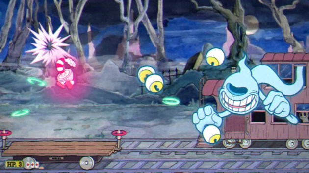 PHASE TWO – THE CONDUCTOR: God, this game is gorgeous. I’ve said it before, but has there ever been a more fun game to watch than Cuphead? Hell, give Studio MDHR Dragon’s Lair and see what they do with that. Anyway, the Conductor will always start in the center car and slam his massive hands down. From there, the head will move around randomly (though never in the same car twice in a row). Despite the girth of his hands, even if you’re not under the head, there’s actually a safe spot on the rail car no matter what position you’re in. I’ve had entire fights against this thing without ever paying any heed to what position on the track I’m sitting on. What a bonehead.