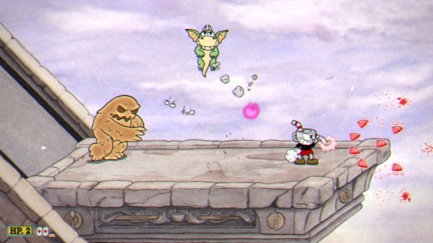 PHASE THREE – GET IT? SHE’S A B-52 NOW! IT’S FUNNY BECAUSE SHE’S A BEE!: What should be an epic final form still doesn’t land at all because the fight still sucks. And that’s not even getting into how inelegant this battle is. Rumor’s bullshit sawblade attack is one of the biggest GOTCHA!s in the game, since there is absolutely NO WAY to see it coming the first time around. Or, several times after, really. It’s not set-up with a proper telegraph (and there’s NO point in doing this kind of game without a telegraph), it fully extends too quickly, and it covers over half the screen. It’s just a dick move, the shitty icing on the most disgusting cake in all of Cuphead. And this is all in addition to the still randomized platforms. I died just as much falling to the bottom of the screen as I did from the saw. The one shining light is this phase should go quickly, as you can ping a lot of damage off phase three while you’re still in phase two. Congrats, you’ve made it past the worst boss in a good game I’ve ever played. This was the absolute rancid shits. The worst they could have done. Ugh, horrible!