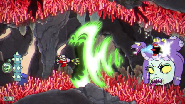 PHASE THREE – BRING ME THE HEAD OF MEDUSA: This is where they might have taken the whole “turn to stone” angle a little too far. After you cause enough damage, Cala’s head will break off from the body and enter a narrow tunnel. Despite what you’d think from the NES Teenage Mutant Ninja Turtles, the coral lining the tunnel is not lethal to the touch, but you must still avoid the walls themselves. Maria will now drop little skull bubbles and continue to stun-lock you. There’s also spiky barriers that you have to avoid. The bubbles and the barriers would be challenging enough, but getting stun-locked (which seems to be 100% unavoidable) forces you to quickly hit 22 input commands (that’s what the Cuphead wiki says) before you unfreeze. A memorable conclusion, but one that can be randomly unfair. That’s why this is among the least favorite battles among pros.