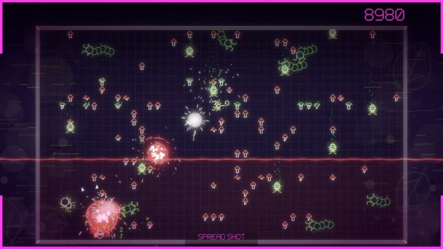 THE BELLY: The robot unleashes a wave of four drones that fly back and forth around the screen in an S pattern. As soon as you blow up the head, head to the bottom and blow this up. After being destroyed, it’ll unleash gigantic bombs that, when you shoot them down, still blow-up in still-deadly explosions that must be avoided. Keep a distance and you’ll be fine.