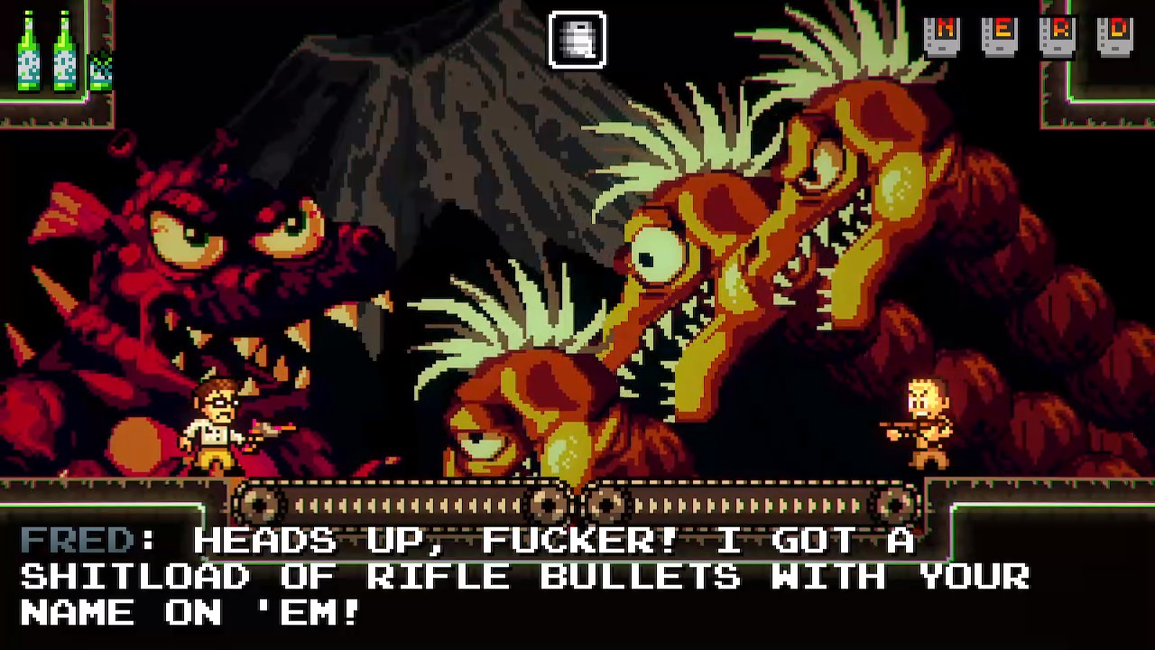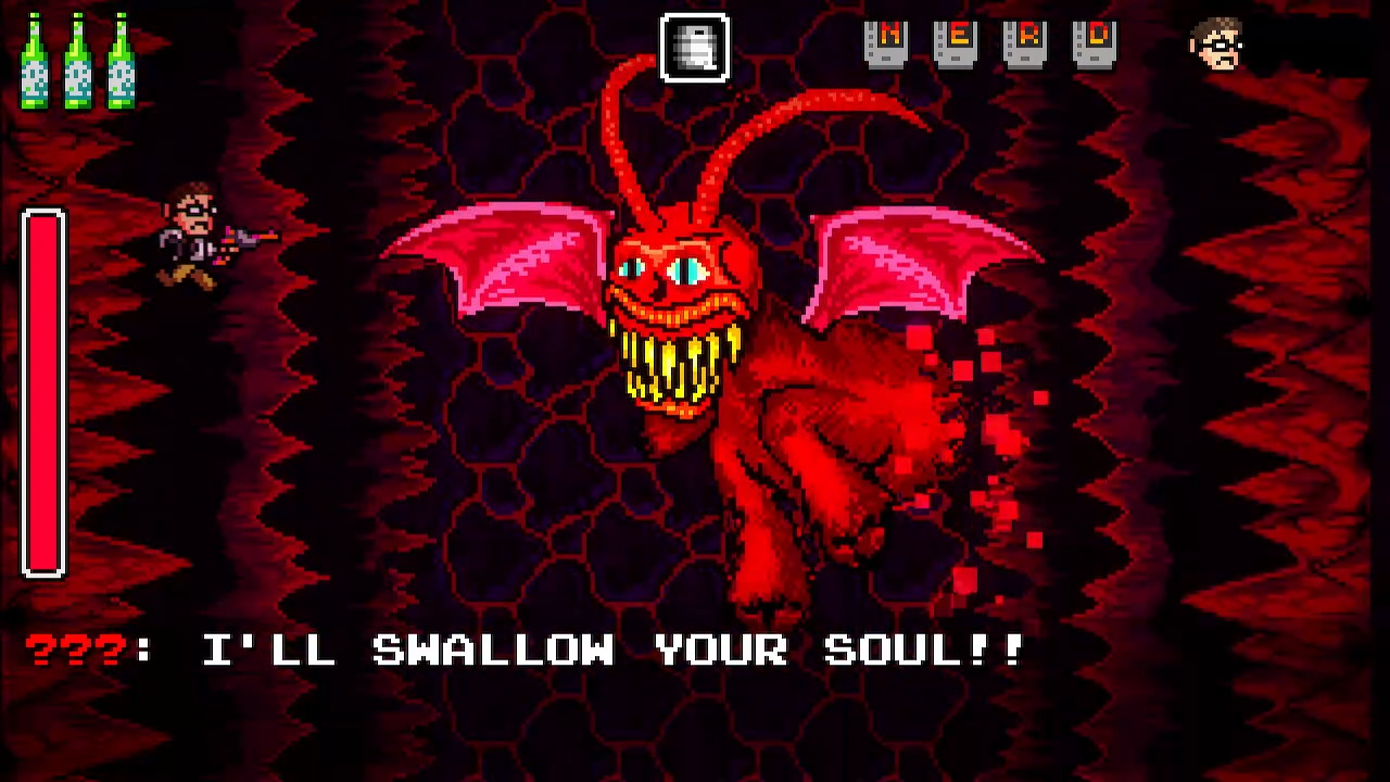 The second game features regular encounters with “Fred Fucks”, which is based on a gag credit from the NES Castlevania. Yes, they stretched a joke that lasted about a second in one Nerd review into a mini-boss you have to fight like six times in a game. Seriously though, how else do you make a game based on someone who plays bad games?