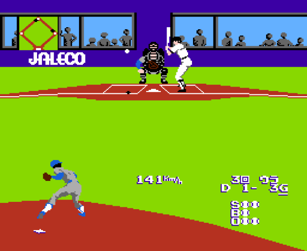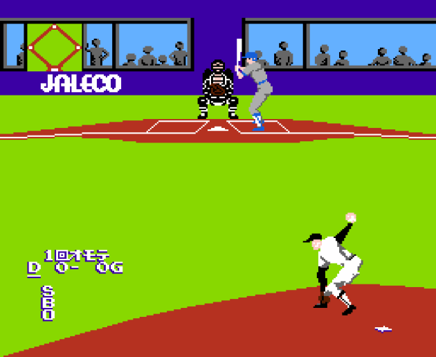 Yep, this is an ambitious game of baseball that tries to earn the “real” in its name. Oh, it doesn’t, but I do admire the effort. I should probably note that this game comes from Pax Softonica. You might not recognize the name, but NES sports fans will recognize a game they worked on for Nintendo: Ice Hockey. Yea, the skinny/medium/fat one. That’s a really good game, as are games like the Game Boy Donkey Kong and Earthbound franchise launcher Mother for Famicom (if you’re into that sorta thing). Pax Softonica didn’t design those games but they helped build them. So Super Real Baseball comes with a legitimate pedigree. Part of me wonders if they pitched this to Nintendo and Nintendo was like “nah.” It does have the Nippon Professional Baseball license and, I assume, accurate rosters for the time period. It also is the first baseball game on the NES that feels like it’s trying to be a simulation of athletics and not a “video game.” What do I mean by that? Well, it’s an attempt at 3D gameplay where literally everything is done manually INCLUDING your batting stance.