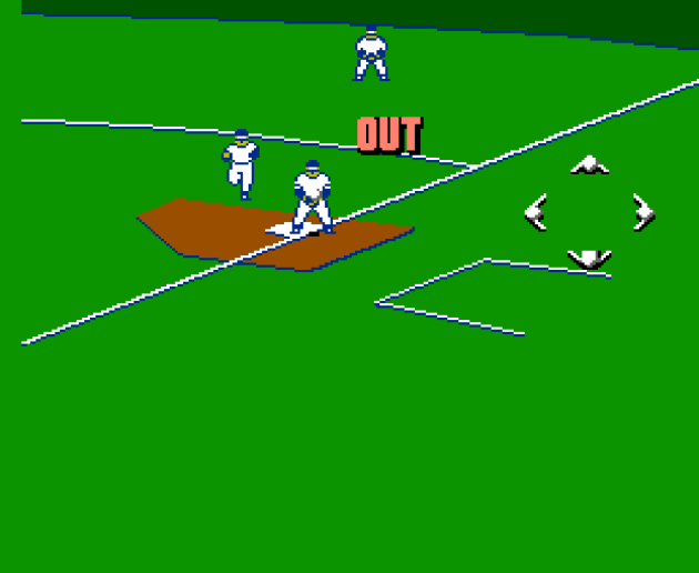 The B-Button does this weird diving catch that has a massive delay. When the CPU hit shots that I knew damn well hadn’t bounced off the ground first, I tried using save states to catch the ball using this. Not only did it not call it an out but there was a massive delay in being able to throw. Stick to the A Button.
