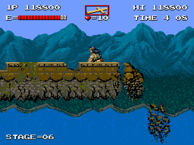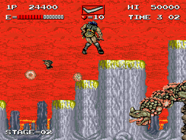 Platforming is kept to a bare minimum, which didn’t bother me. Most of the arcade barbarian subgenre of the late 80s had roughly the same amount of jumping and moving platforms. If nothing else, Haunted Castle’s maps are boilerplate. That’s all the proof you need that it’s the action that fails this game, not the settings.