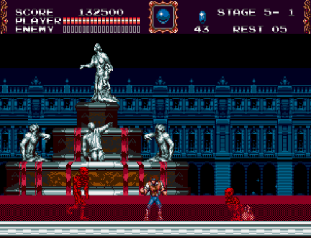 Castlevania: Bloodlines aka Castlevania: The Next Generation (Europe) aka Vampire Killer (Japan) Platform: Sega Genesis Released March 17, 1994 Designed by Teisaku Seki Developed by Konami Available with a Switch Online Expansion Pack Subscription