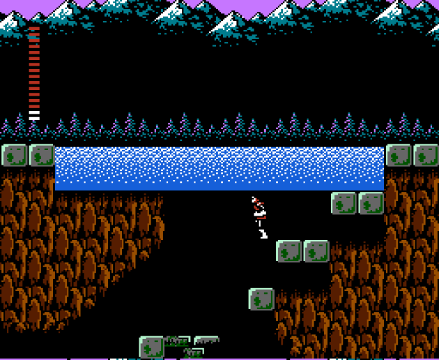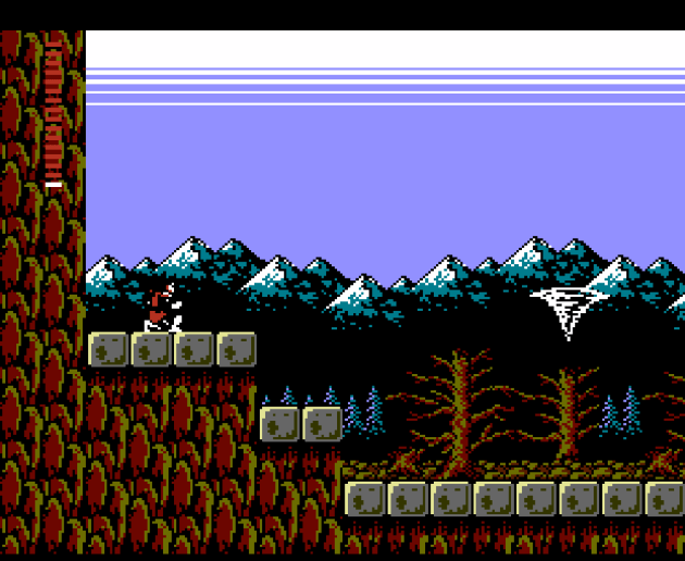 You’ll notice a LOT of flat ground in these screenshots. Now, Castlevania 1 is a game that I’ve probably played more than any other NES game and it has a lot more of these straight corridors than people realize, but it can get away with it by utilizing a linear format with PERFECTLY placed enemies, which is to say nothing of the haunted house setting doing a lot of the heavy lifting and the boss fights to serve as checkpoints. You can’t get away with that type of design in a Metroidvania, and especially one that didn’t care one iota about boss fights. The result is a mostly boring landscape to travel.