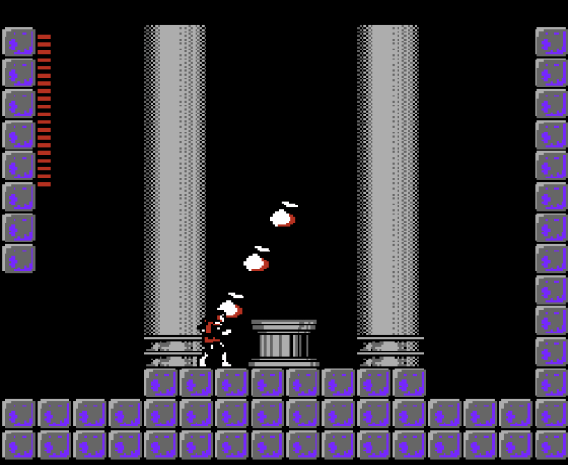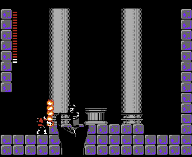 It’s worth noting I played two versions of Haunted Castle (out of five total) for this feature, the ones known as VERSION N, which is the initial Japanese release, and VERSION M, which is the second North American ROM and the one notorious for its hard difficulty. Regardless of which version you play, the lack of intuitive collision detection is always the worst problem. I assure you in this shot, my sprite wasn’t anywhere near those fireballs or the bat. You can feel the difference regardless of the difficulty toggles by paying attention to the bats. Version M’s bats attack in a much more cruel, hard to avoid way.