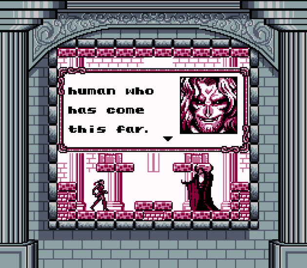(shudder) It even gets creepy, something the other two Game Boy Castlevanias didn’t come close to doing.