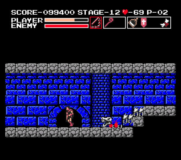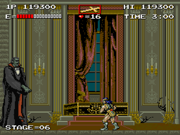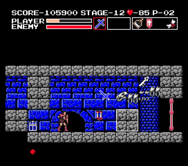 I think Vampire Killer might earn the title “the weirdest 2D game in the franchise” because of how different it is from the typical Castlevania. I can’t believe I’m saying this, but the whip was my least favorite weapon. I never use the throwing knives in most 2D Castlevania games, but I preferred them for this game because knives gave me range and speed without having to worry about losing them every time I used them. Plus, the knife was reliable in terms of collision, whereas whip was inconsistent. I was constantly whipping right through candles to no effect, and in general, the whip has none of the OOMPH you expect from a normal Castlevania game’s whip.