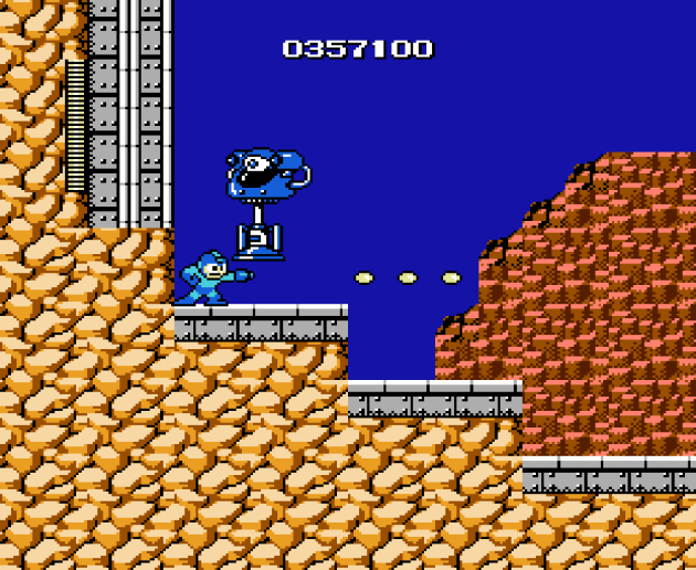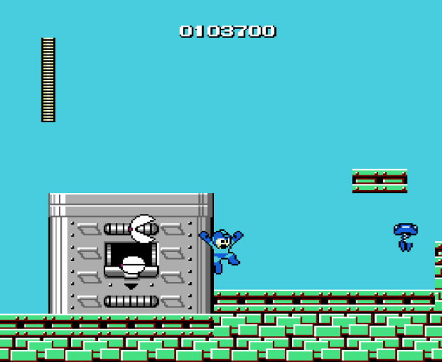 Everything I’ve talked about in the last few paragraphs could apply to the larger franchise, which tends to nail level themes and struggle with satisfying boss balance. But what about the very first game? Well, it’s rough. No doubt about it, there’s a lot of room to improve. But as a prototype of better things to come, it’s actually not that bad. Going into this review, I really expected Mega Man 1 to be a lot worse than it actually is. Where I think a lot of the dislike comes from is in its penchant for cheap shots and poorly balanced basic enemies. Like the the Big Eyes take a whopping 20 hit points to kill and can’t be jumped over, but they also don’t necessarily jump high enough for you to go under them. The area they’re placed in usually isn’t optimized to fight them, either. It’s an example of not getting the most out of their potential, especially when they gave me more problems than most of the bosses.