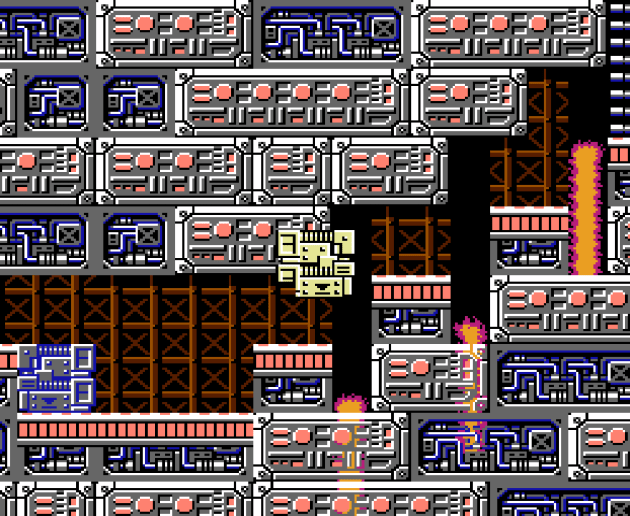 This is only the second time I’ve ever really played through the first Mega Man game. Other than a few memorable elements, it was essentially playing it fresh. So when I encountered an ambitious-for-its-time set piece like this, I was taken back. That’s not too bad looking at all, gives Fire Man’s level’s a distinct personality, AND it works from a gameplay perspective.