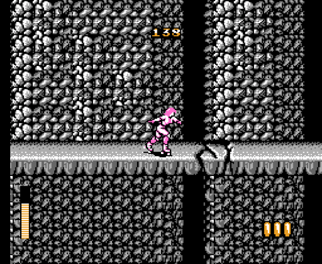 In terms of gameplay, despite the technical limitations, very few sacrifices had to be made to gameplay. If anything, I think it’s easier to recognize the high-jumping ghosts, since they’re black in this version instead of a murky gray (on a game with washed-out graphics to begin with), while the lower-jumping green versions are brighter and stand out more. The biggest difference is in the difficulty. The NES version feels much easier. Ghosts tend to clump-up less, and because of the fast movement and responsive controls, the power pellets are much more effective on the NES. But, that’s a positive change in my opinion. While the faster speed combined with the green power pellet can lead to chaotic movement (the only time I lost a life was when I was green-pilled), it’s just a more fun experience. As much as I love the coin-op Pac-Mania, I think the NES version is better. There, I said it.