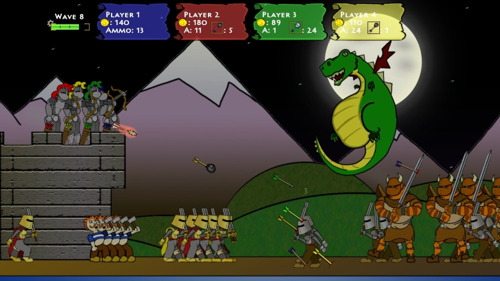 Knee in the Arrow really has the look of a bad XBLIG, but sometimes the really bad-looking stuff can surprise you. I’ve been caught off guard by the quality of games like Don’t Feed the Trolls, The Cannon, and Asphalt Jungle 2 in the past, and Arrow seems like it should join them in the “surprisingly fun” camp. It doesn’t, but it comes close. There’s a wide variety of enemies, items to purchase, and arrows to fire. So why didn’t I like it? Well, part of it is those bad graphics, which contribute to the difficulty in aiming, but also make it hard to distinguish between what type of arrow you’re firing. Some of the enemies get too spongy and attack too fast for you to reasonably defend yourself. The Dragons, for example, knock out one floor of your castle every time they attack. You’re supposed to use ice arrow to defend yourself, but their bullets move too fast and realistically you’ll only have one shot to actually hit the fireball. Because the aiming never feels quite right, it’s sort of a crap shoot to actually hit it, leaving you better off unloading arrows directly into the dragon and hoping you survive the round and can hire guys to fix your castle.