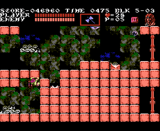 If you have the axe, this fight is a cinch. Especially with the first double shot in the game hidden right there. But, if you use the whip, it’s a much more intense and satisfying battle. You know, I don’t think I ever tried fighting Castlevania’s bosses without sub-weapons. You can tell they weren’t really made to be fought with the whip. Depending on where it lingers, you might have to wait for it to dive down and attack you to get your licks in.