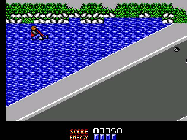 The final proper level has you running up flights of stairs. This is a level where you REALLY don’t want to jump if you can avoid it, since you stick to walls, land on unnecessary platforms, or end up behind the stairs. You can’t leap up the stairways and there’s really no way to take them faster. This is the one part of the game that I held my breath every time, since ninjas might appear and throw stars at you that you can’t really see since the stairway graphic covers them up. There were times where my character just keeled over, dead as Kelsey’s nuts, as if taken by natural causes. I had to check the replay to see the faint pixel of an enemy in its throwing motion. In theory, you can defend against the ninja stars (and seemingly ONLY the stars, no other projectiles) with your sword. In those rare instances where I pulled this off, it was awesome. But the timing never felt consistent.