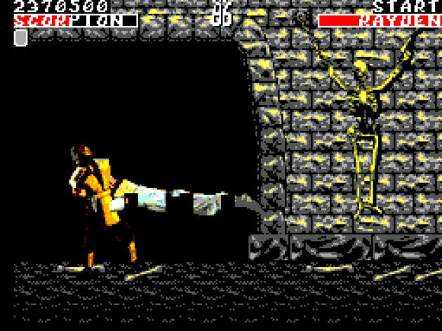 In the final level, you play a relatively short battle sequence. Then, the playfield pictured above starts to loop. Since I used one of the enemy-freezing crystal balls to help me get past the combat portion of the stage, I genuinely thought I broke the game. The crystal ball seemed to work a lot longer than it normally did, and then I passed what looked like a graphical anomaly. I had been checking the statues for hidden items and didn’t find any. So, what happened? Well, I must not have checked the statues right the first time, because this sequence has three hidden scrolls. There’s no enemies or timer during this, which is the very final part of the game before you board a ship and the credits roll. Quite possibly the worst way I’ve ever seen a quality game end. This is the Game of Thrones Finale of video games where you say out loud “god damn WOW, holy crap, that was stupid and dumb and a major letdown.”
