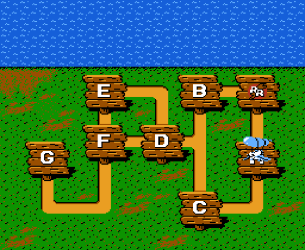 Now this is more like it, and it’s based on my second favorite Disney ride. For two levels, and two levels only, Adventures in the Magic Kingdom is a pretty dang decent NES platformer. In terms of the mechanics, I’d go so far to say the platforming areas of this title are some of Capcom’s best NES work. Great jumping physics. Gorgeous sprite work. Decent enough combat. Nice level design, mostly. These are easily the highlights of Adventures in the Magic Kingdom. Since you can take the stages in any order, I would totally recommend someone who has no interest at all in the previous four activities to fire this game up JUST for the two platforming sections. While they’re not amazing, they also never manage to suck. For about ten minutes combined, you get solid, enjoyable Capcom-Disney platforming goodness that feel like a proof-of-concept for a game that never happened.