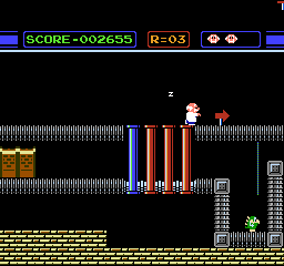 The other two games aren’t as strong. Especially Miss Piggy’s game, which is a send-up of crossing-the-road games like Frogger, only it’s completely toothless. Which.. yea, so are the Muppets, come to think of it, but I meant it’s not a hard game to win. In it, you don’t lose a life if you collide with any of the objects, and instead you only fail if you can’t reach the ship before it leaves the screen. Not that it’s bad or anything, but I had runs of it that only lasted a couple seconds before I won. The final segment features the Swinetrek and satirizes shmups, and it has a truly weird attack method. When you shoot, your bullet hooks to the left or right, depending on which direction you last pushed. Getting the hang of the physics of this was actually neat, and there’s another slapstick twist worthy of the source material: if you miss, your own bullet could come back down and could kill you. This part had the most potential, but it crawls along at a snail’s pace and only has one type of enemy (plus you die if you touch the walls, which you will). So, how do I rate a game like this? While it was intended as a joke, you know what? It ain’t boring, that’s for sure. There’s some good gameplay in here, especially the first segment. You can take the games in any order too, and if you only want to play one of the games, just don’t choose the others! Do you love Space Invaders? This is the best Space Invaders-like on the console. So yea, Pigs in Space ain’t bad at all. Who’d have thunk it?