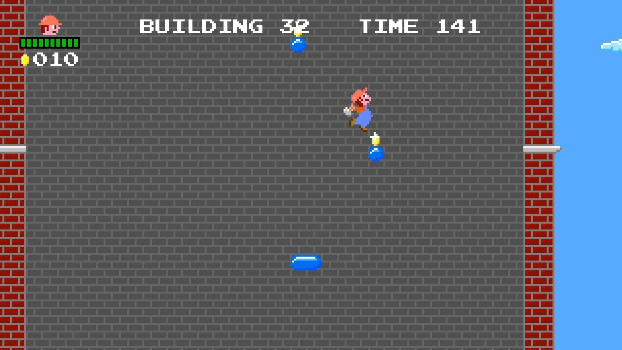 It’s been just over two months since I last played Demolition Crew for the Nintendo Switch, but it doesn’t take that long to patch a game these days (well, at least if don’t have a complete shit heel of a publisher). Demolition Crew showed glimpses of potential, but once I discovered a game-destroying glitch that allowed players to phantom-jump up a wall while clipping through surfaces, I threw in the towel. While the phantom jump can still be done, the aspect of it that allowed players to just go straight through the floor is apparently gone. And, while he was at it, developer Xirbx added minor gameplay tweaks and cleanups. It’s still a strange name for a game like this. One that plays much more like Ice Climber than Wrecking Crew. I mean, you’re not really demolishing anything except the occasional wall or floor. You’re just scaling to the roof of buildings to ring a bell. Of course, as the Game of Thrones final season taught us, when the bells ring, everything gets destroyed. Maybe it was prophetic.