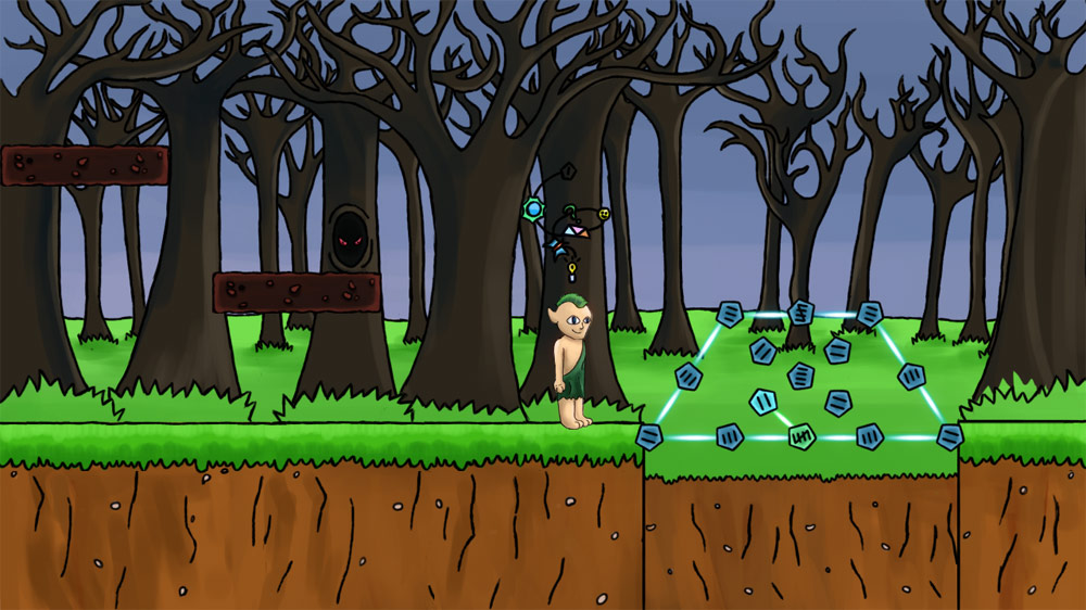 The idea is you’re some kind of demon monster thingie (I think) who is coming of age and learning to use magical connect-the-dots to um, do something. I honestly have no clue. Which is odd because there’s certainly enough writing that I would hope to grasp what is going on. Instead, a kid just kinda wanders off on the woods, sees giant-sized devil thingies, and doesn’t turn around and run home to his daddy.