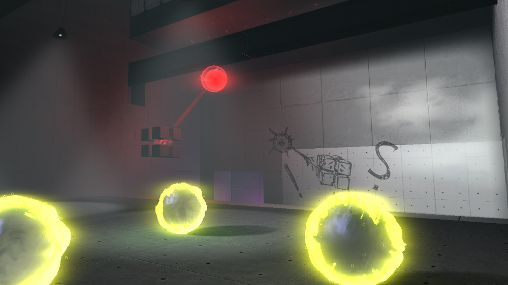 Entropy does have some kind of plot. I guess. But things are kept too abstract and minimalistic to get a feel for what’s going on. You have no character yourself. You’re just a camera that hovers five feet off the ground. The antagonist is a pink ball of light that leads you around from room to room. There’s no dialog, so all you get to go by is the rare pop-up hint, or a sketch on a wall that points you in the direction of a puzzle’s solution. Forget about seeing where they’re going with this. I don’t even know what they’re doing right now.