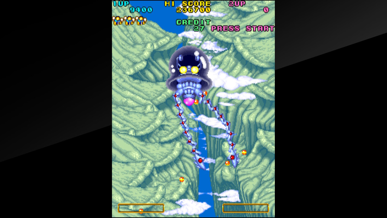 I’ve somehow managed to play multiple versions of TwinBee over the last year. The arcade version was included in the putrid Konami’s Arcade Classics Anniversary Collection, while the NES version is free with Switch Online. I wrote off the formula as being unworkable and dumb. The concept of a shump where items come in the form of bells that must be juggled via shooting until they become useful is, frankly, kinda not good. That doesn’t change here. While playing Bells & Whistles, you’ll want to shoot a lot. But if the bell changes to a useful item, a second shot changes it back to gold, which is only worth points. And you’ll make that mistake a lot because, you know, you’re supposed to shoot a lot. That’s by design, too. The screen is often spammed with enemies at the very moment the clouds that contain the bells arrive. That’s useful in the typical Arcade Archives Hi-Score or 5-minute Caravan modes, but not so much when you’re trying to go as far as you can in the game without losing a life. It’s a bizarre mechanic for sure, and while it has fans, I’ll point out that TwinBee as a franchise is comfortably on the fringes of gaming and never rose above it. Maybe that’s why?