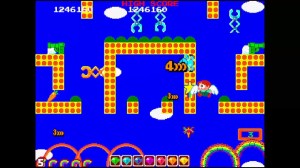 Don’t let the adorable facade fool you, though, because Belly & Whistler dips its toes in bullet hellfire late in the game. And that can be problematic, because the visually loud background and relatively small, under-developed bullets are often very hard to see. Some fans of the genre disagree with me, and I’ll fully admit I’m not a hardcore bullet hell fan, but I think the key to a really good bullet hell is to make the bullets visible. In a screen full of projectiles, the challenge should be dodging them, not trying to locate them and dodge them. In a fast-paced, auto-scrolling shump, having to do both isn’t a reasonable challenge. It’s just not. Granted, this game was made to earn money 25¢ at a time, and if the person is deep into the game, that means they’ve been sitting there for a while. If they’re there by virtue of being good, that machine wasn’t making money. Spamming the screen with low-visibility bullets against backgrounds that bleed into the bullet colors is a cheap, borderline dishonest way of getting the person occupying the cabinet to put more money in it, but it works.