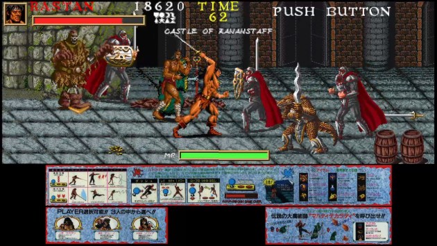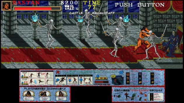 Platforming is kept to a bare minimum, which didn’t bother me. Most of the arcade barbarian subgenre of the late 80s had roughly the same amount of jumping and moving platforms. If nothing else, Haunted Castle’s maps are boilerplate. That’s all the proof you need that it’s the action that fails this game, not the settings.